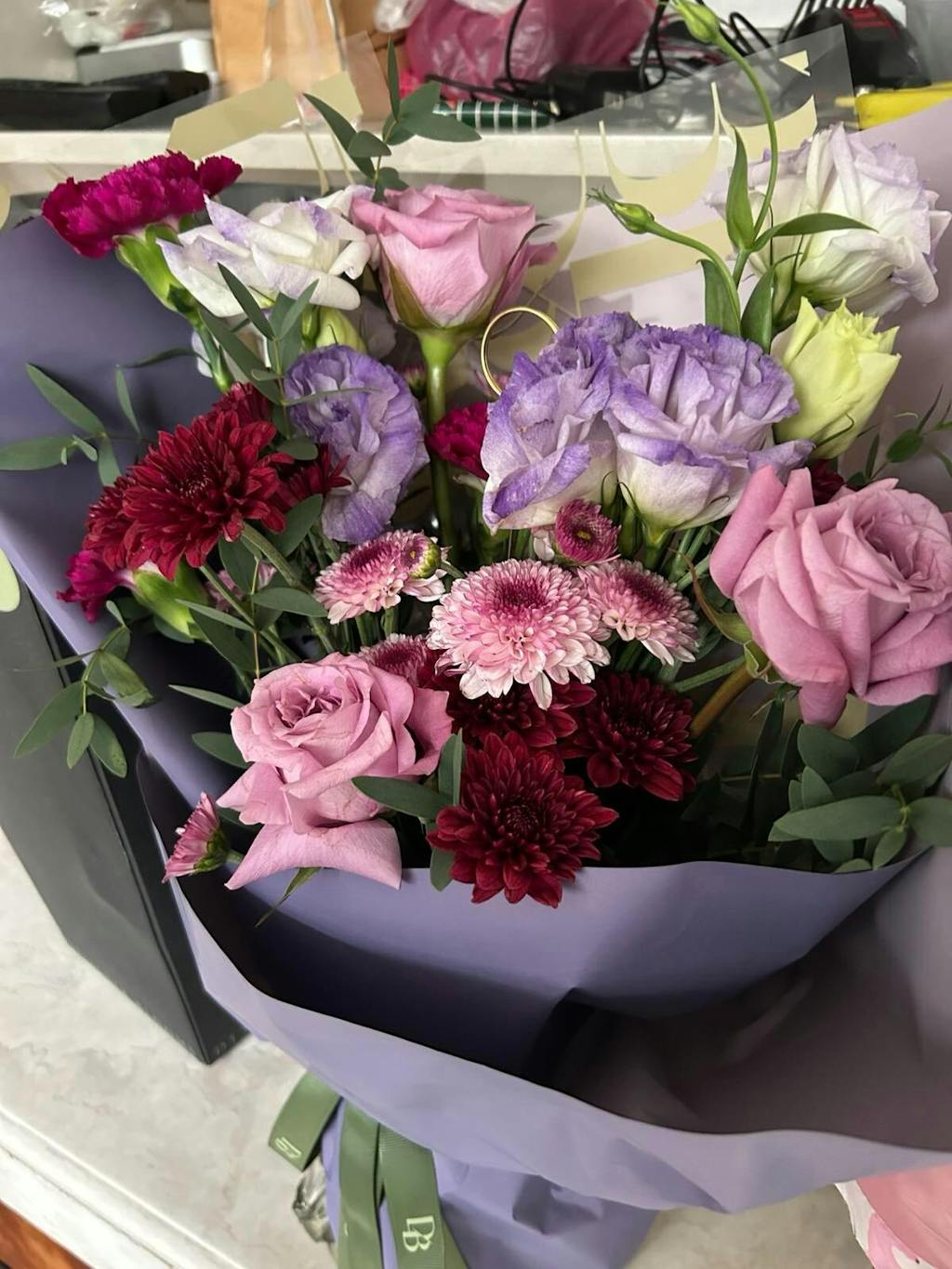 Filler flowers: Eucalyptus, Matthiola, Statice