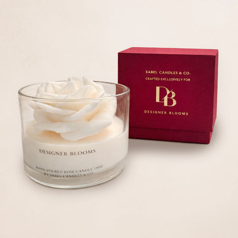 Crafted exclusively for Designer Blooms, this 12oz hand-poured soy candle features a delicately sculpted rose bloom and is infused with our signature Dewberry scent, a soft romantic fragrance that lingers with grace. Encased in a refined glass vessel and presented in a bespoke gift box, it is a timeless expression of elegance and fragrance.