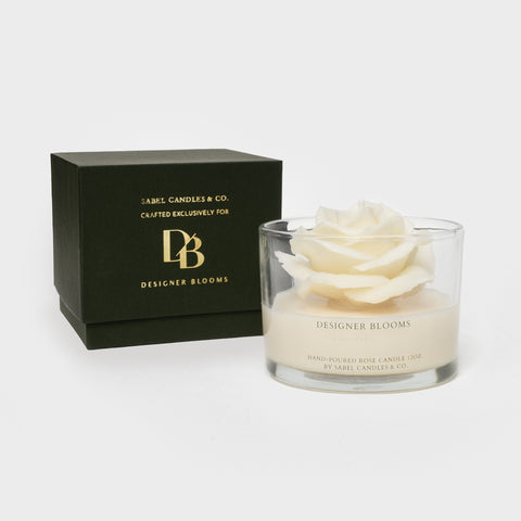 Crafted exclusively for Designer Blooms, this 12oz hand-poured soy candle features a delicately sculpted rose bloom and is infused with our signature Dewberry scent, a soft romantic fragrance that lingers with grace. Encased in a refined glass vessel and presented in a bespoke gift box, it is a timeless expression of elegance and fragrance.