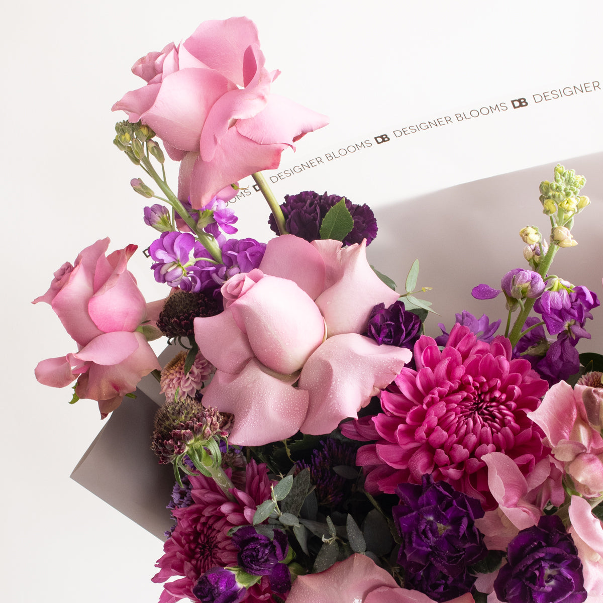 Filler flowers: Eucalyptus, Matthiola, Statice